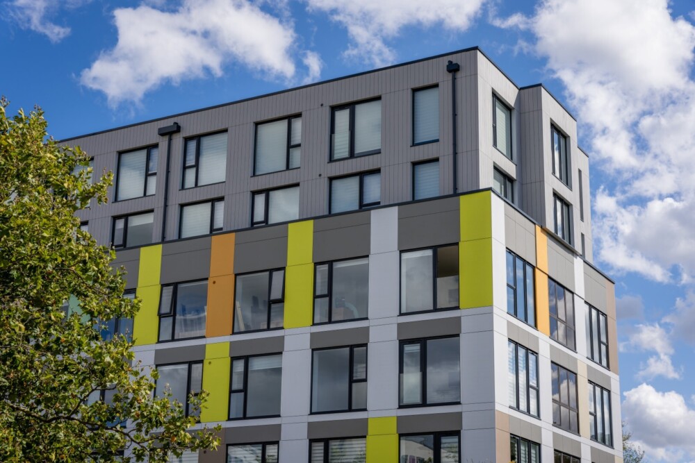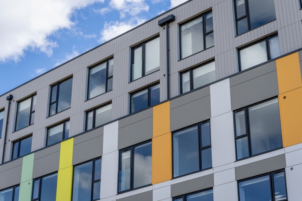 Hardie® Panel fibre cement cladding is a low maintenance and durable facade option that holds an A2-s1, d0 fire rating, as well as being backed by a BBA certificate.
