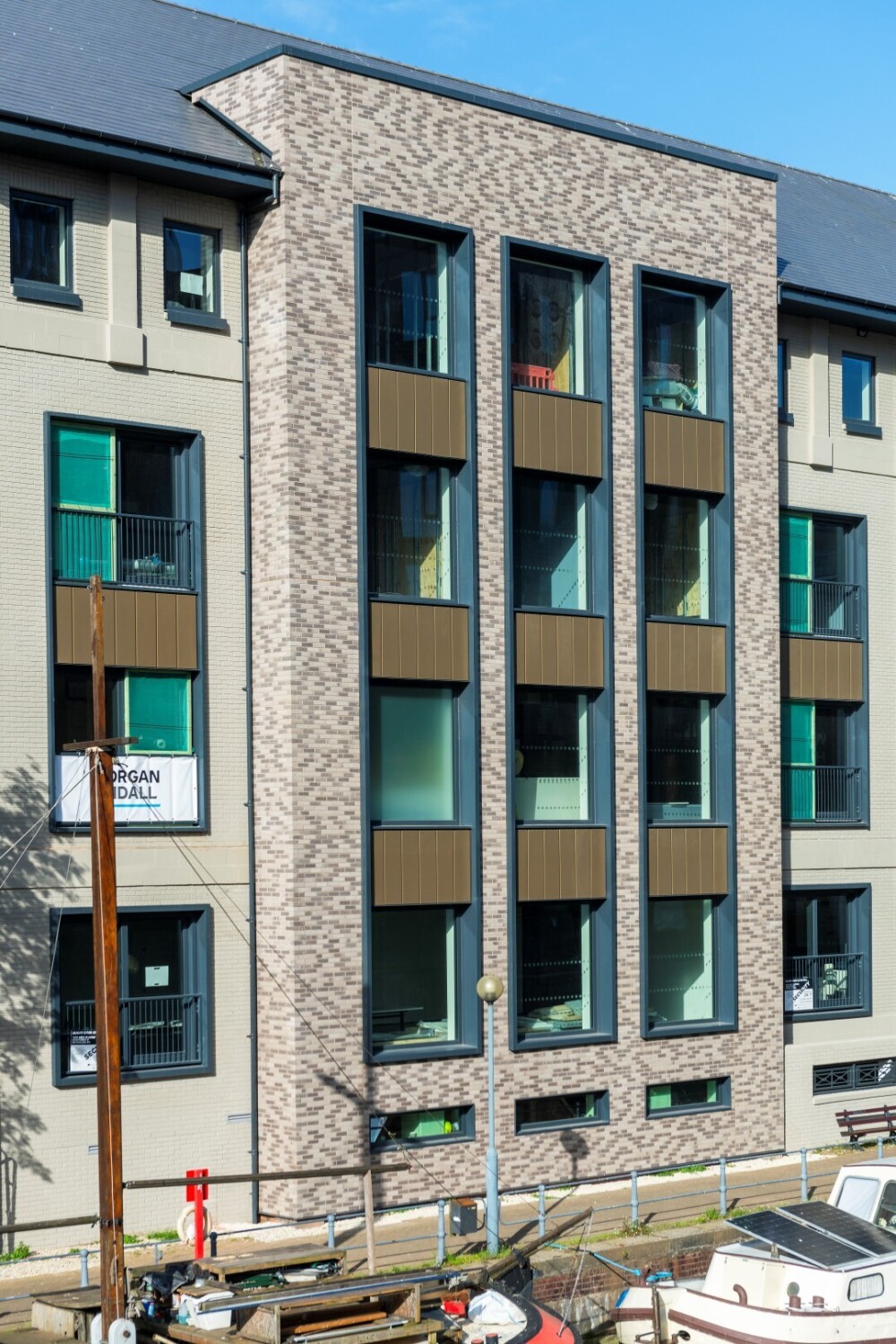 Architects Stride Treglown wanted to retain the existing structure of North Quay House, to contribute towards the project’s Net Zero goals. Therefore, it was decided that Corium brick cladding would be utilised to reclad the facade, giving the building a new and improved appearance. Corium was able to offer many benefits to the project, being both A1 fire rated and BBA approved (19/5693), alongside providing key sustainability benefits.